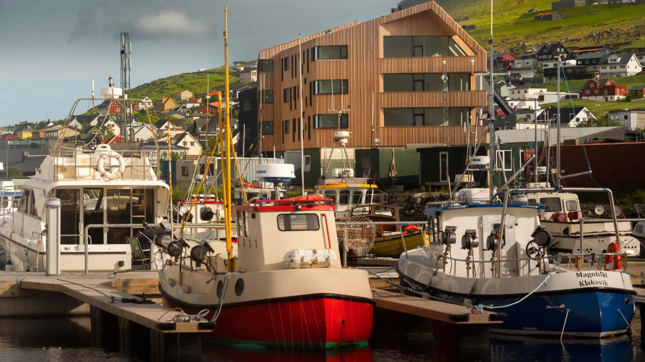 Viesnīca Hotel Føroyar ir slavenu dāņu arhitektu projektēta un atrodas tikai ~2 km attālumā no Fēru salu galvaspilsētas Torshavnas. Tā paceļas virs Nolsoy fjorda, piedāvājot viesiem iespaidīgu panorāmas skatu uz pilsētu un apkārtējiem kalniem. Viesnīcas jumts ir apaudzēts ar zāli, bet blakus ganās aitas – tas piešķir uzturēšanās laikā autentisku Fēru salu sajūtu.